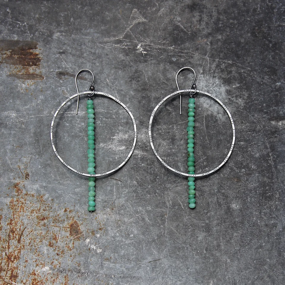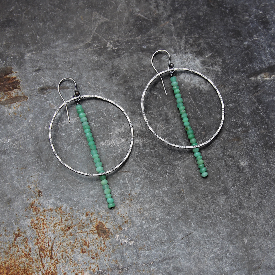 Handmade with chrysoprase and recycled sterling silver.