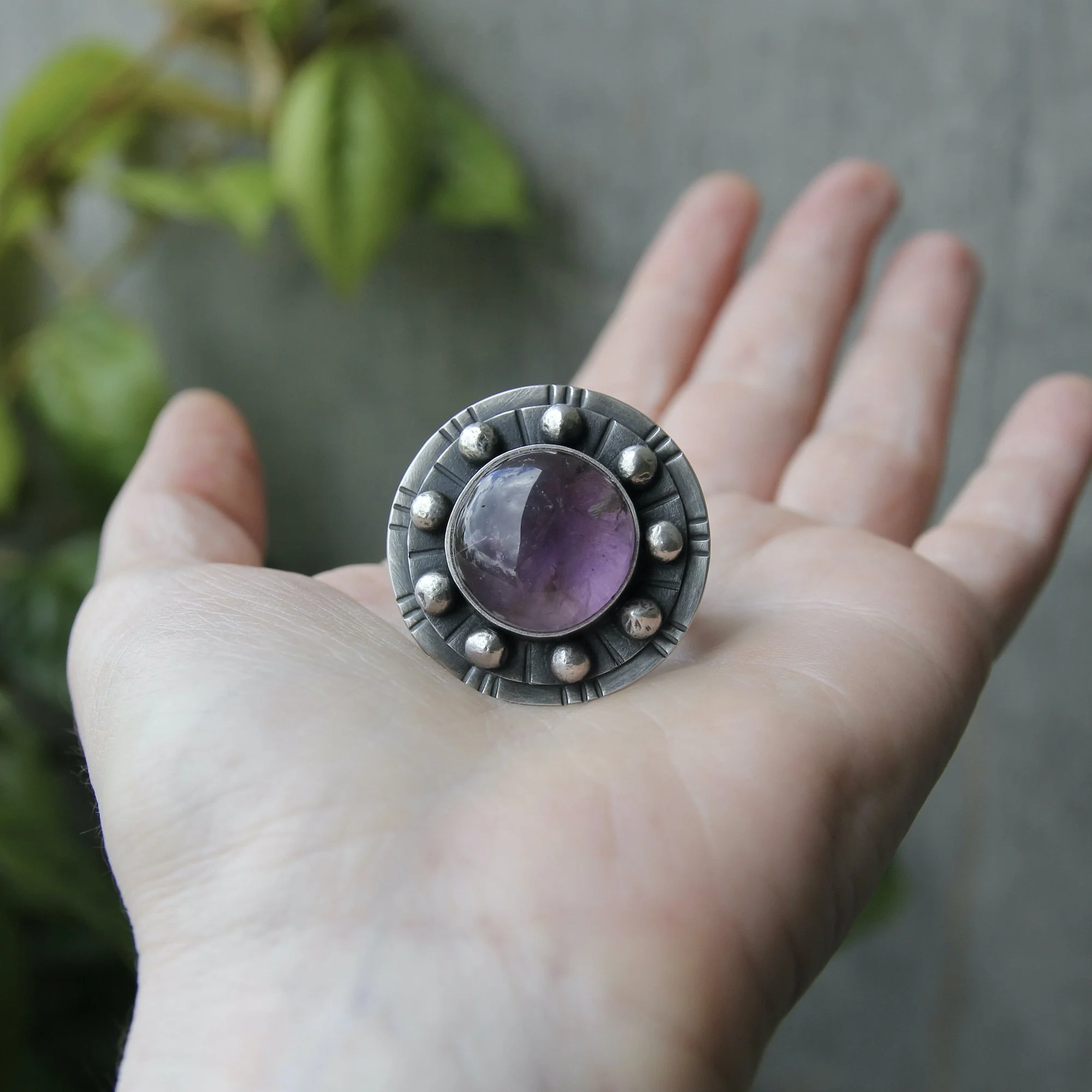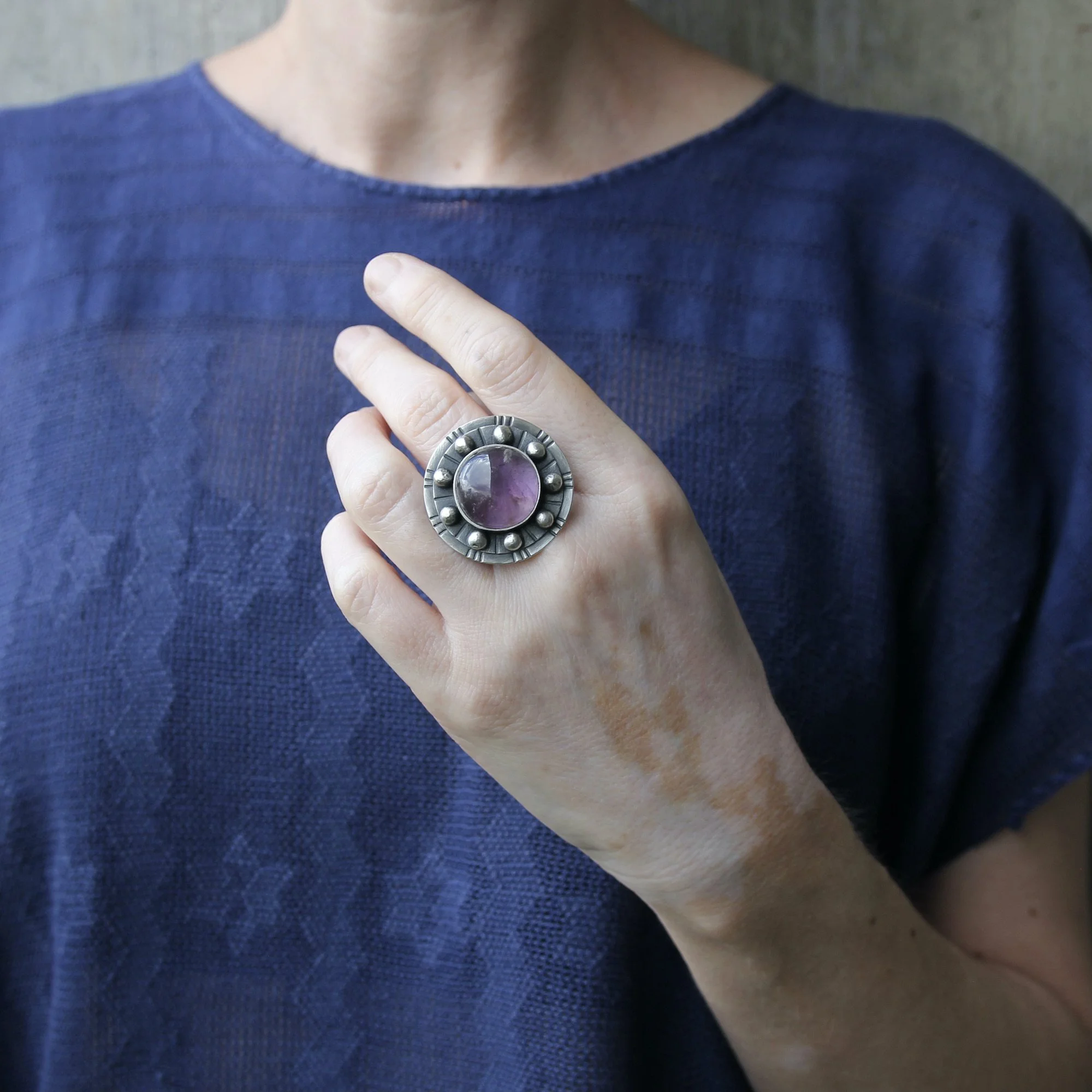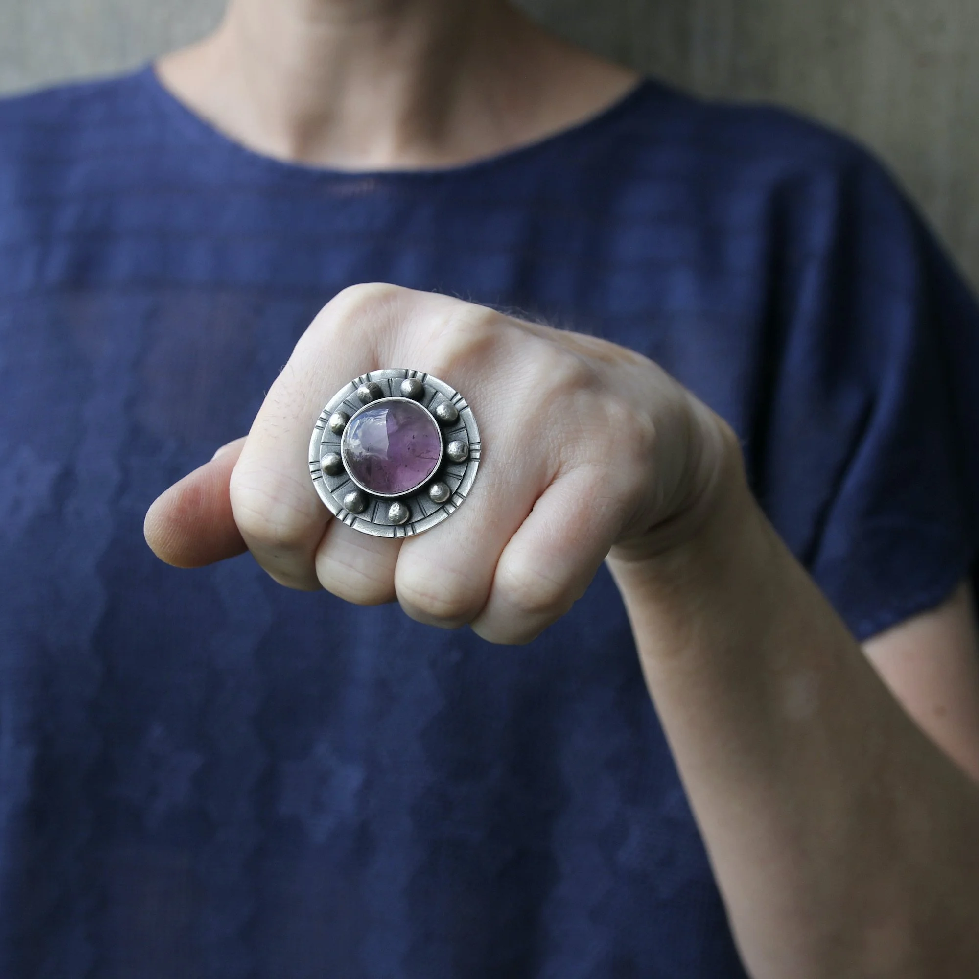 Handmade with amethyst and recycled sterling silver.