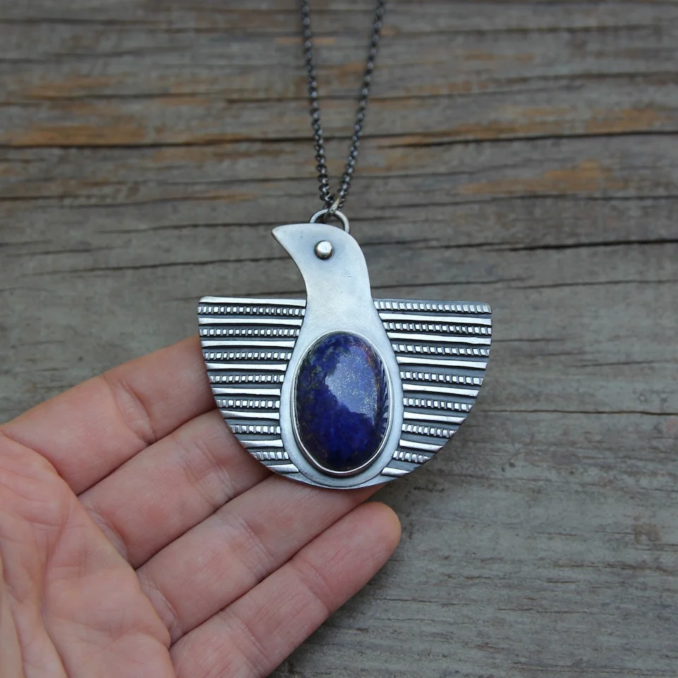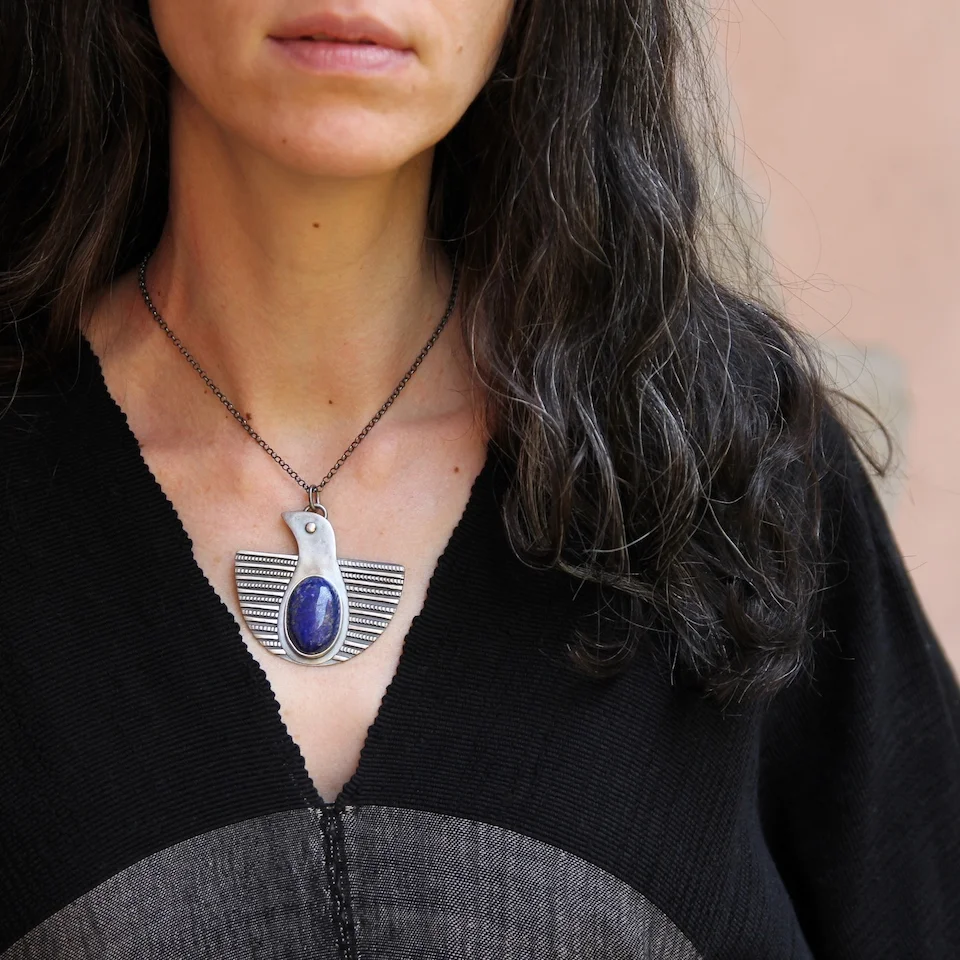 Handmade with lapis lazuli and recycled sterling silver.